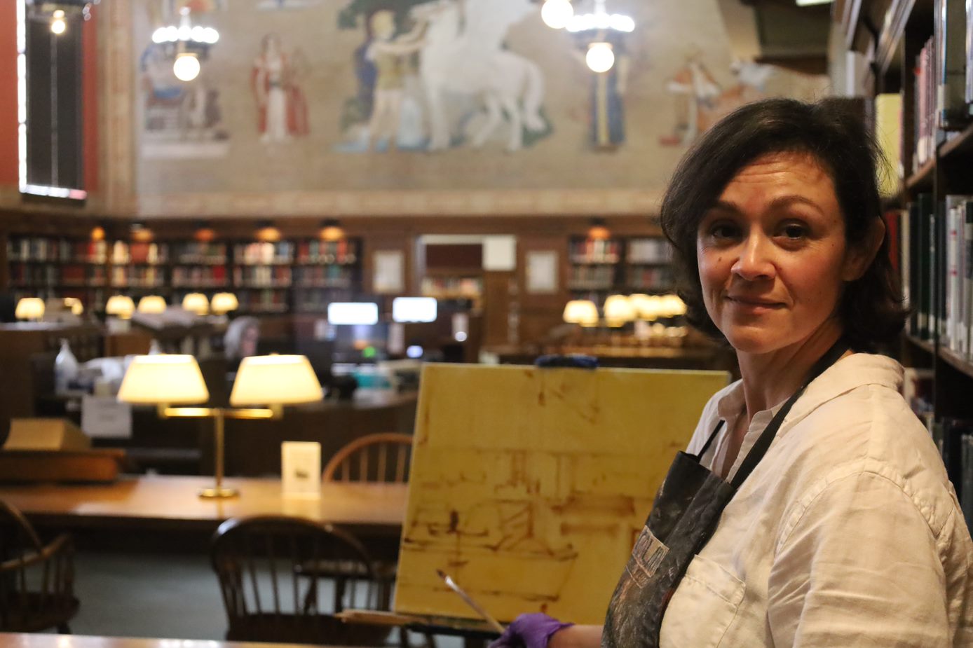| Amy Peterson painted the Ezra Winter murals in BPL's Southern History Department on location. |